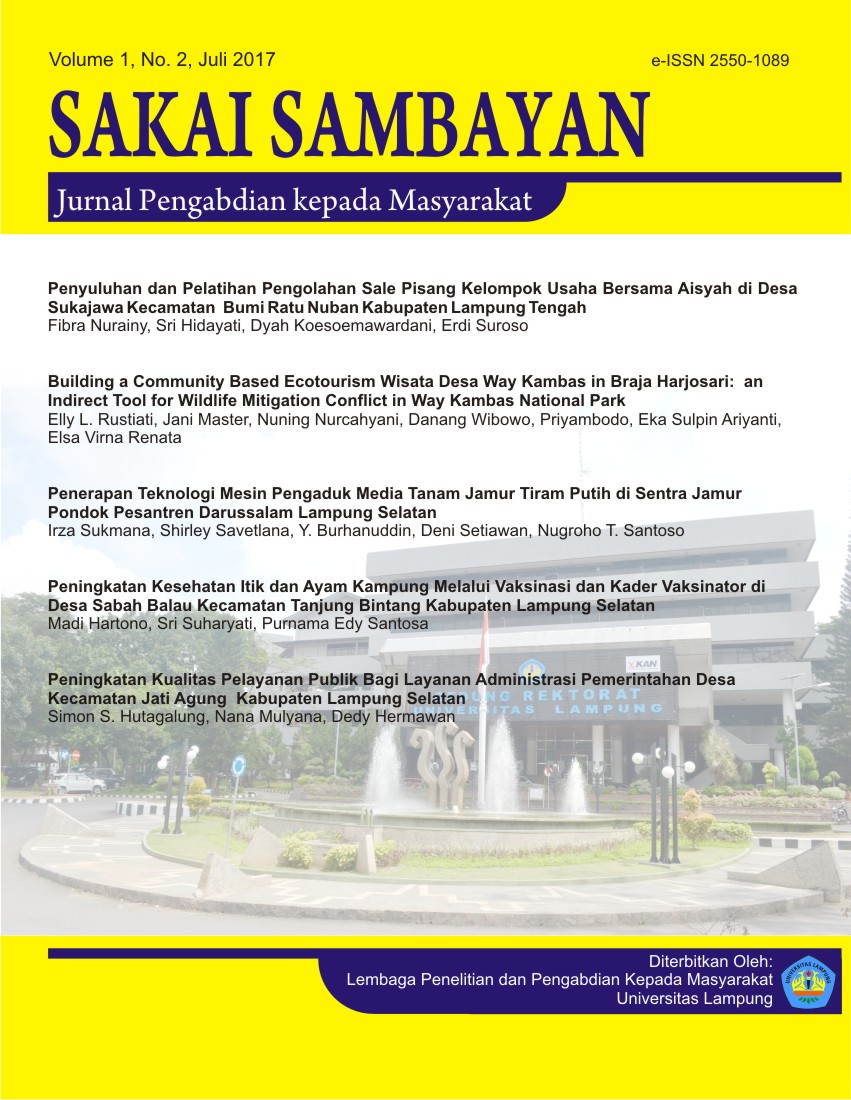 Yudamson, A. (2018). Cover Depan Volume 1 Nomor 2 Juli 2017. Jurnal Pengabdian Kepada Masyarakat Sakai Sambayan, 1(2). Retrieved from http://jss.lppm.unila.ac.id/index.php/ojs/article/view/36